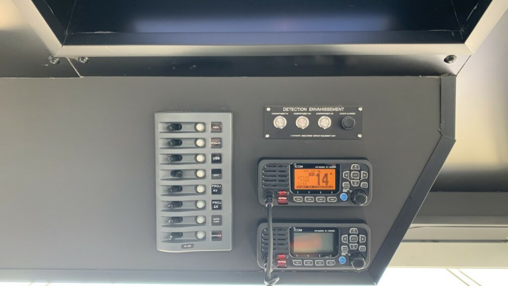 - Options : échelle perroquet, portique arceau porte-feux, mâtereau de traction, antifouling de carène, défense delta caoutchouc, coffres, bancs, etc…